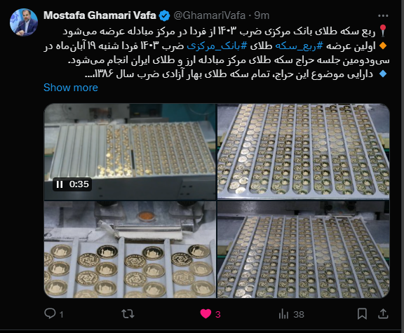 به گزارش کارآفرينان نيوز مصطفی قمریوفا مدیر روابط عمومی بانک مرکزی امروز جمعه ۱۸ آبان در این باره اظهار داشت: دارایی موضوع این حراج، تمام سکه طلای بهار آزادی ضرب سال ۱۳۸۶، نیم سکه طلای بهار آزادی ضرب سال ۱۳۸۶ و ربع سکه بهار آزادی ضرب سال ۱۴۰۳ بانک مرکزی و بدون بسته بندی است.